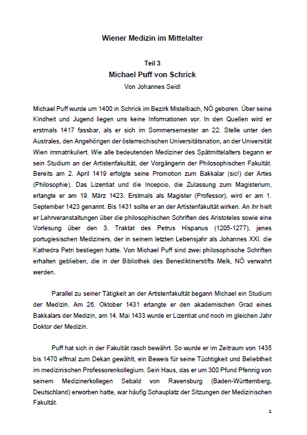 Im dritten Teil unserer medizinhistorischen Beitragsreihe "Wiener Medizin im Mittelalter" bringen wir die erste Biographie eines Wiener Professors der Medizin.